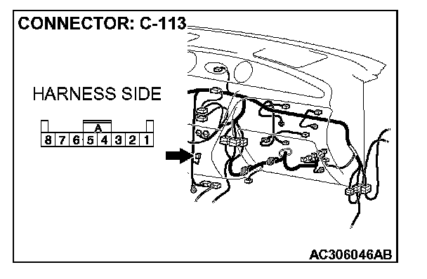 STEP 1. Check immobilizer-ECU connector C-113 for loose, corroded or damaged terminals, or terminals pushed back in the connector