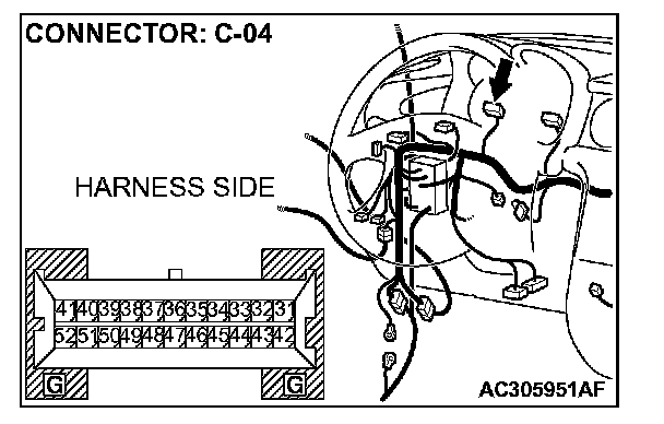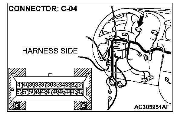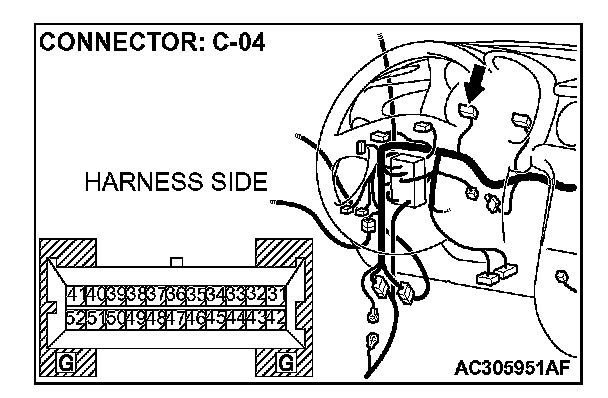 STEP 6. Check combination meter connector C-04 for loose, corroded or damaged terminals, or terminals pushed back in the connector.