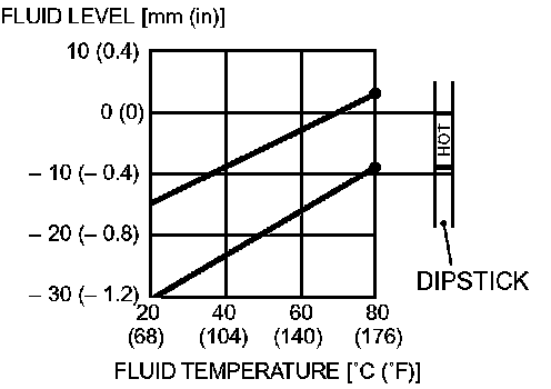 NOTE: If it takes some amount of time until the transmission fluid reaches its normal operating temperature [70 - 80°C (158 - 176°F)], check the transmission fluid level.