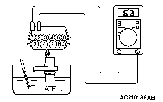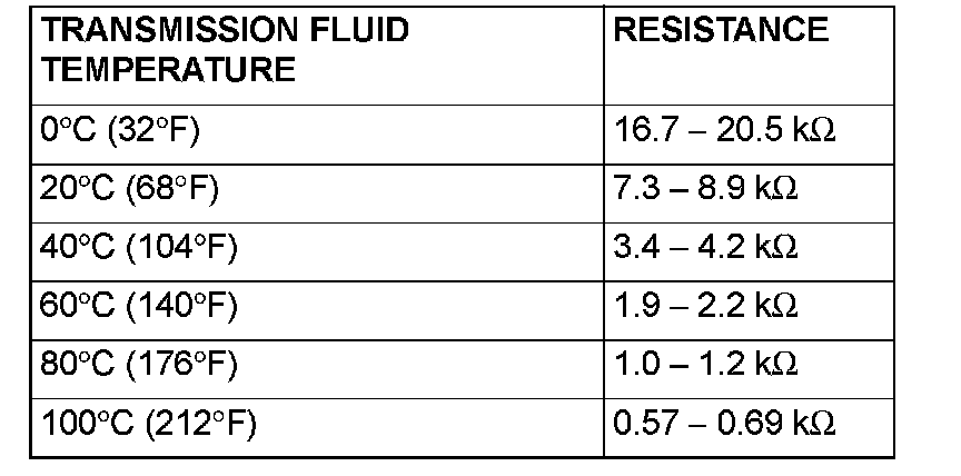 3. If the transmission fluid temperature sensor resistance is outside the specified range and the "A/T TEMP" warning light is illuminating, replace the transmission fluid temperature sensor.