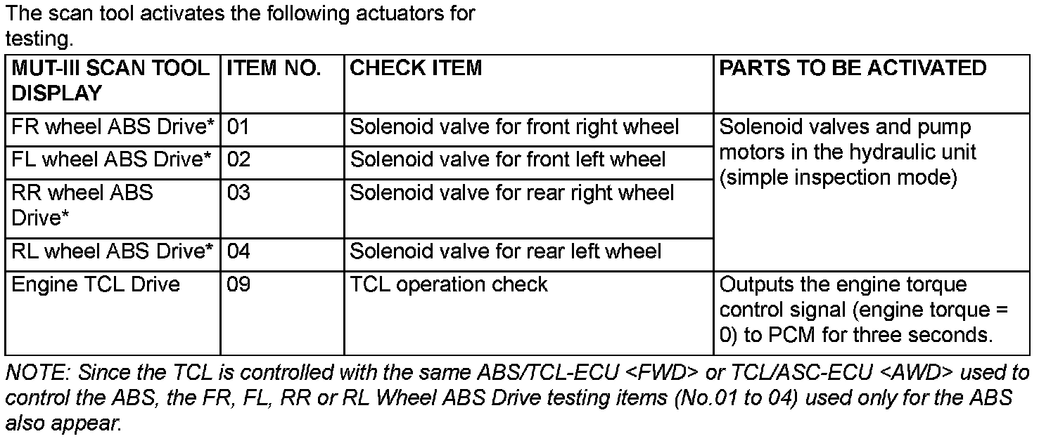 Actuator Test Reference Table: