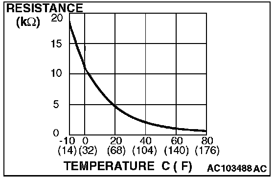 When the resistance between the sensor terminals is measured under two or more temperature conditions, the resistance should approximately satisfy the illustrated values.