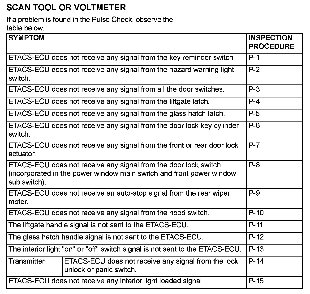 Input Signal Chart - Scan Tool Or Voltmeter: