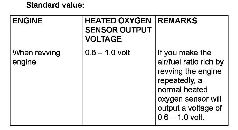 - Be careful the heater is broken when voltage of beyond 12 volts is applied to the heated oxygen sensor heater.