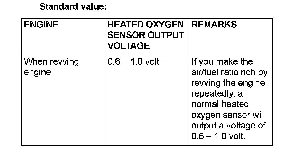 3. If the output voltage is not within the standard value, replace the heated oxygen sensor.