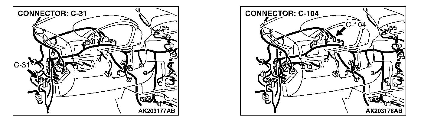 NOTE: Check harness after checking intermediate connectors C-31 and C-104. If intermediate connector C-31 and C-104 are damaged, repair or replace them. Refer to Harness Connector Inspection. Then check that the malfunction is eliminated.