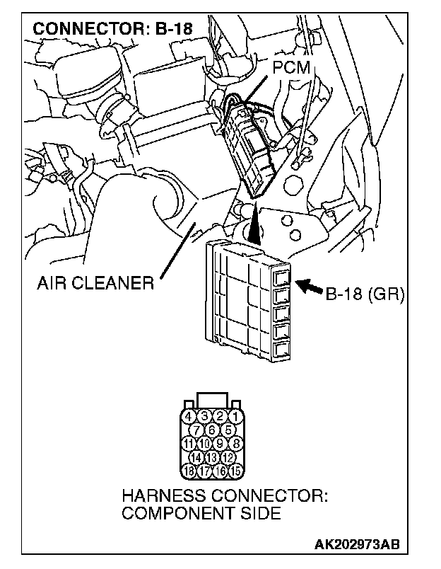 STEP 1. Check harness connector B-18 at PCM for damage.
