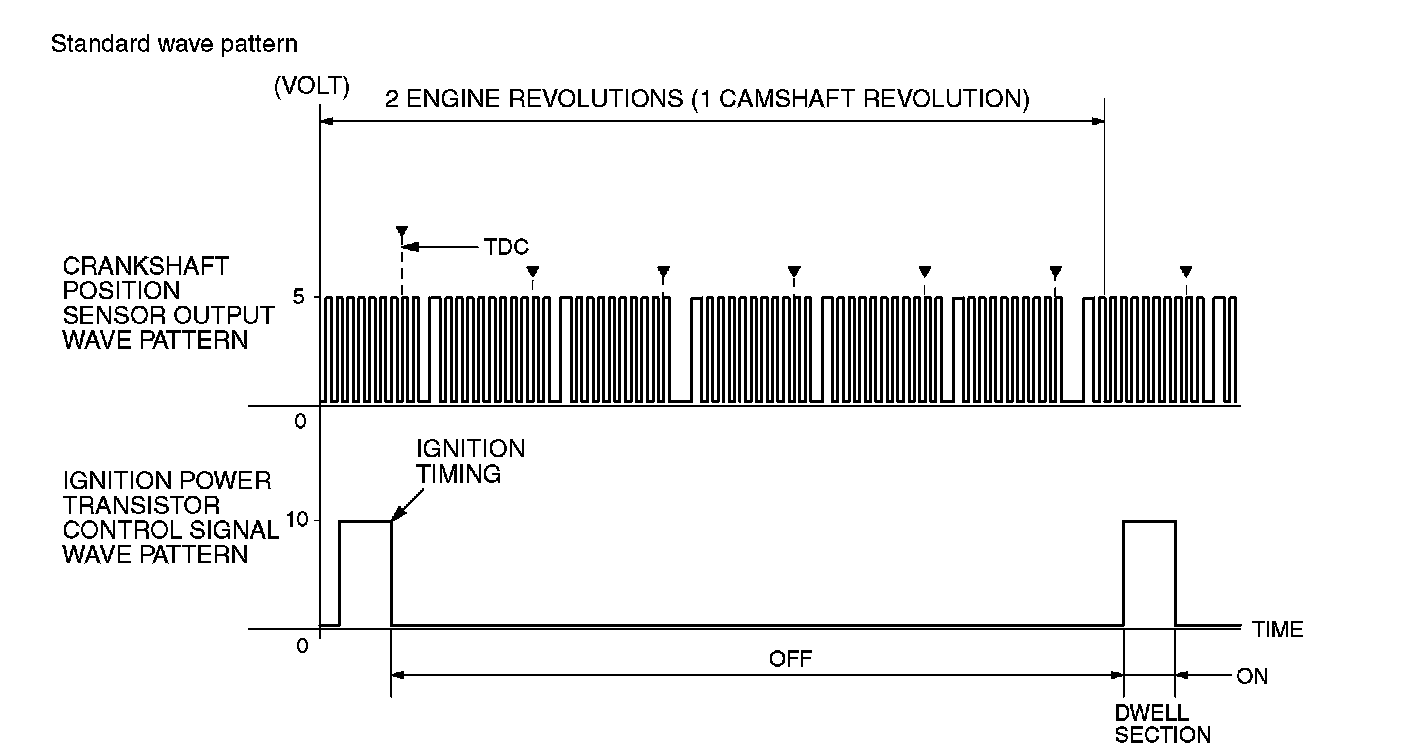 Point: The power transistor control signal (ignition timing) is advanced when the engine speed is increased.