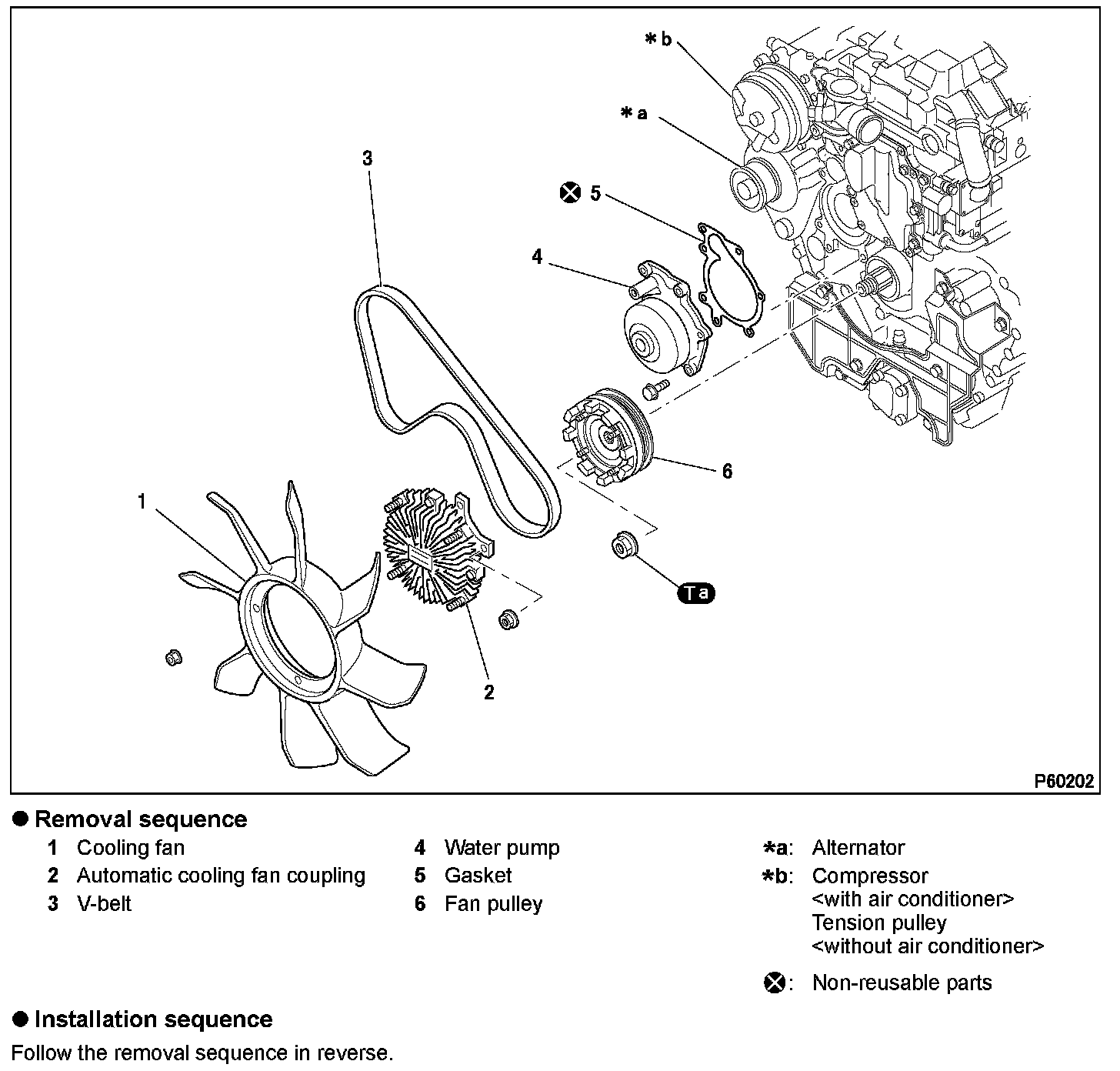 - The automatic cooling fan coupling and the water pump cannot be disassembled. It must be replaced if defective.