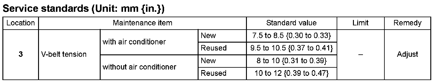 - If the measured value deviates from the standard value range, adjust the tension of the belt as follows.