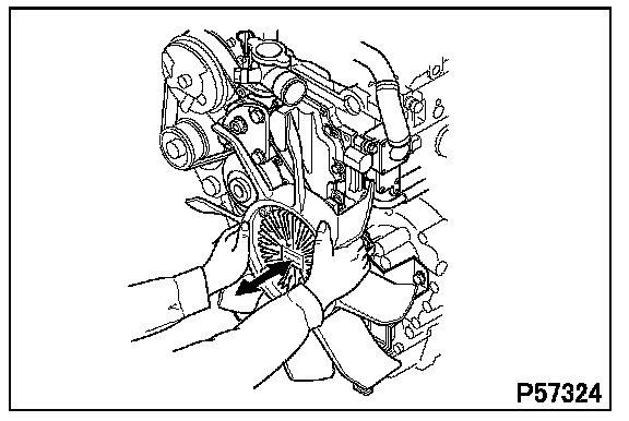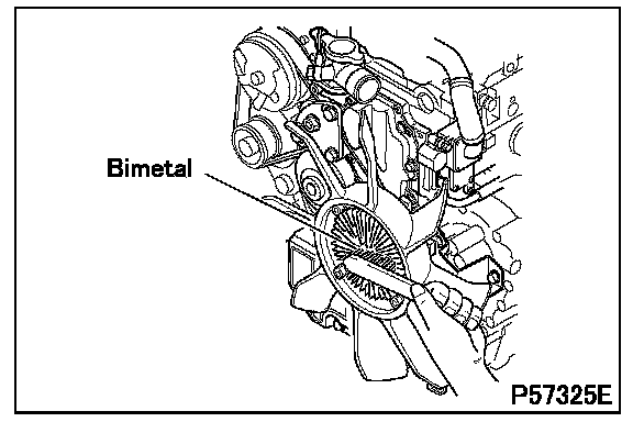 - Make an inspection of the following points. Replace the automatic cooling fan coupling if defective. Check that: