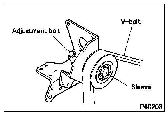 - Loosen the tension pulley mounting sleeve and turn in or out the adjustment bolt to adjust the tension of the V-belt.
