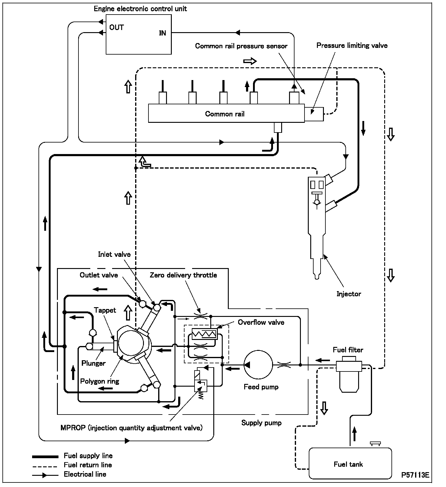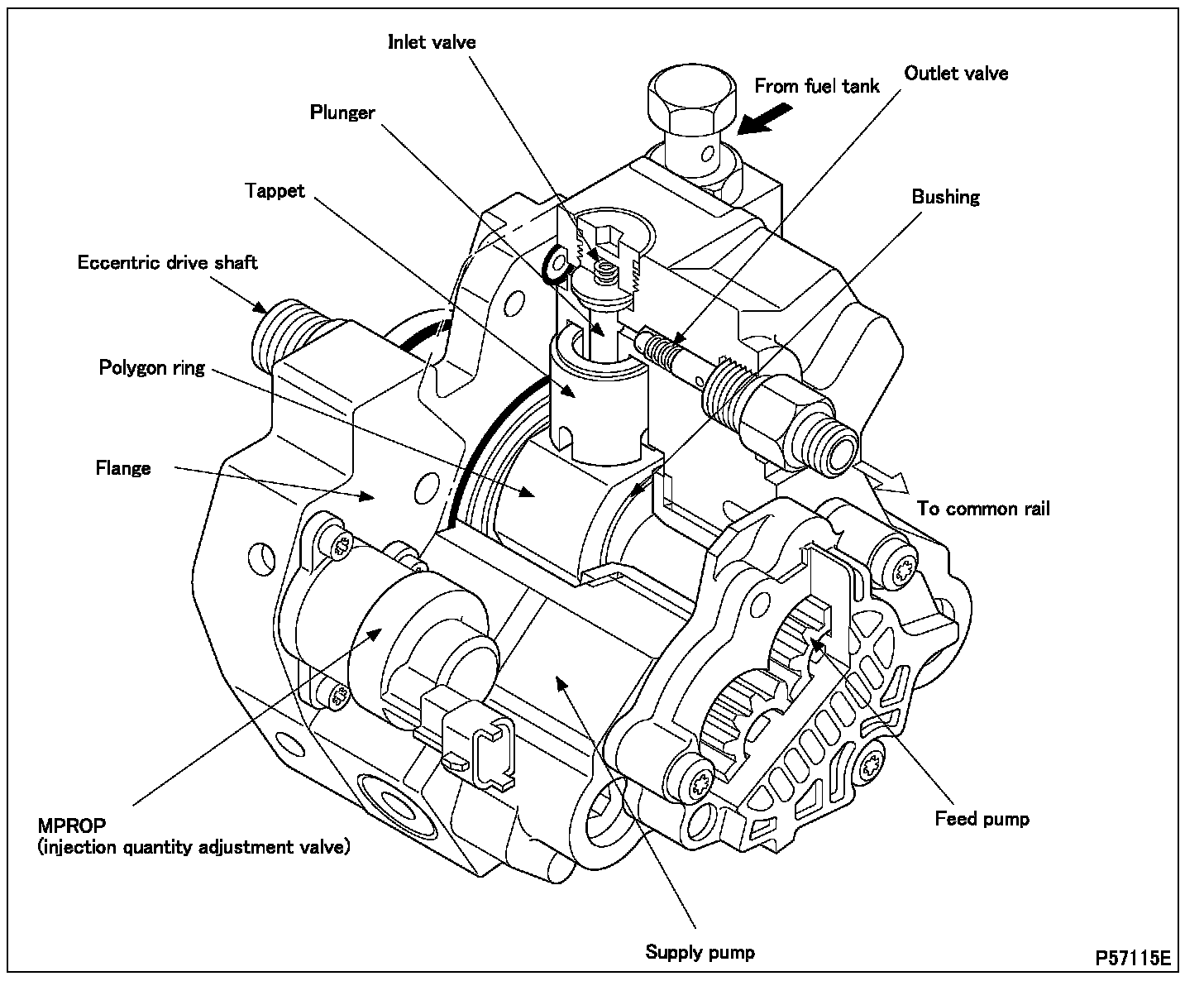 - Fuel drawn from the fuel tank by the feed pump is not supplied directly to the plungers. It is supplied first to the MPROP (injection quantity adjustment valve), which controls the amount of fuel reaching the plungers.
