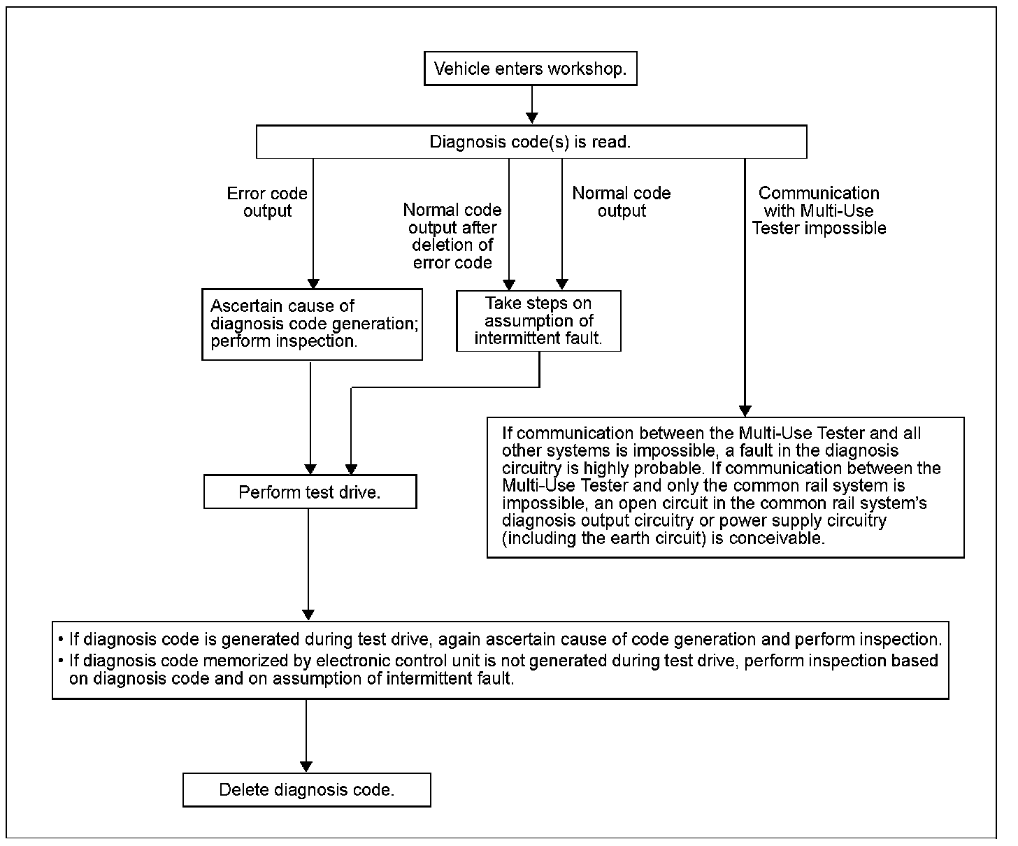 Inspection Procedure- System inspection can be performed most effectively using a Multi-Use Tester-III. Types of system inspection are broadly classified in accordance with fault symptoms and diagnosis codes as follows: