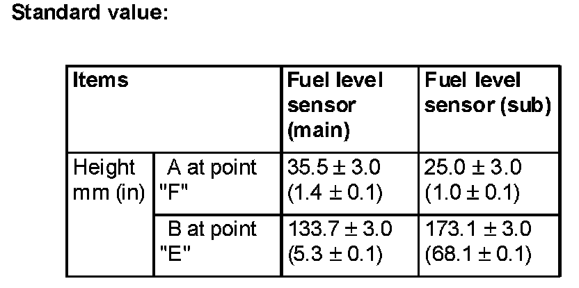 3. If all checks are correct, go to fuel unit height check. If any check is not correct, replace the fuel pump module or fuel level sensor (sub).