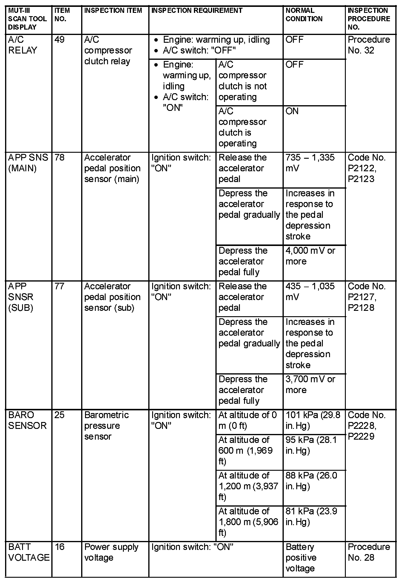 Data List Reference Table & Normal Scan Data Values