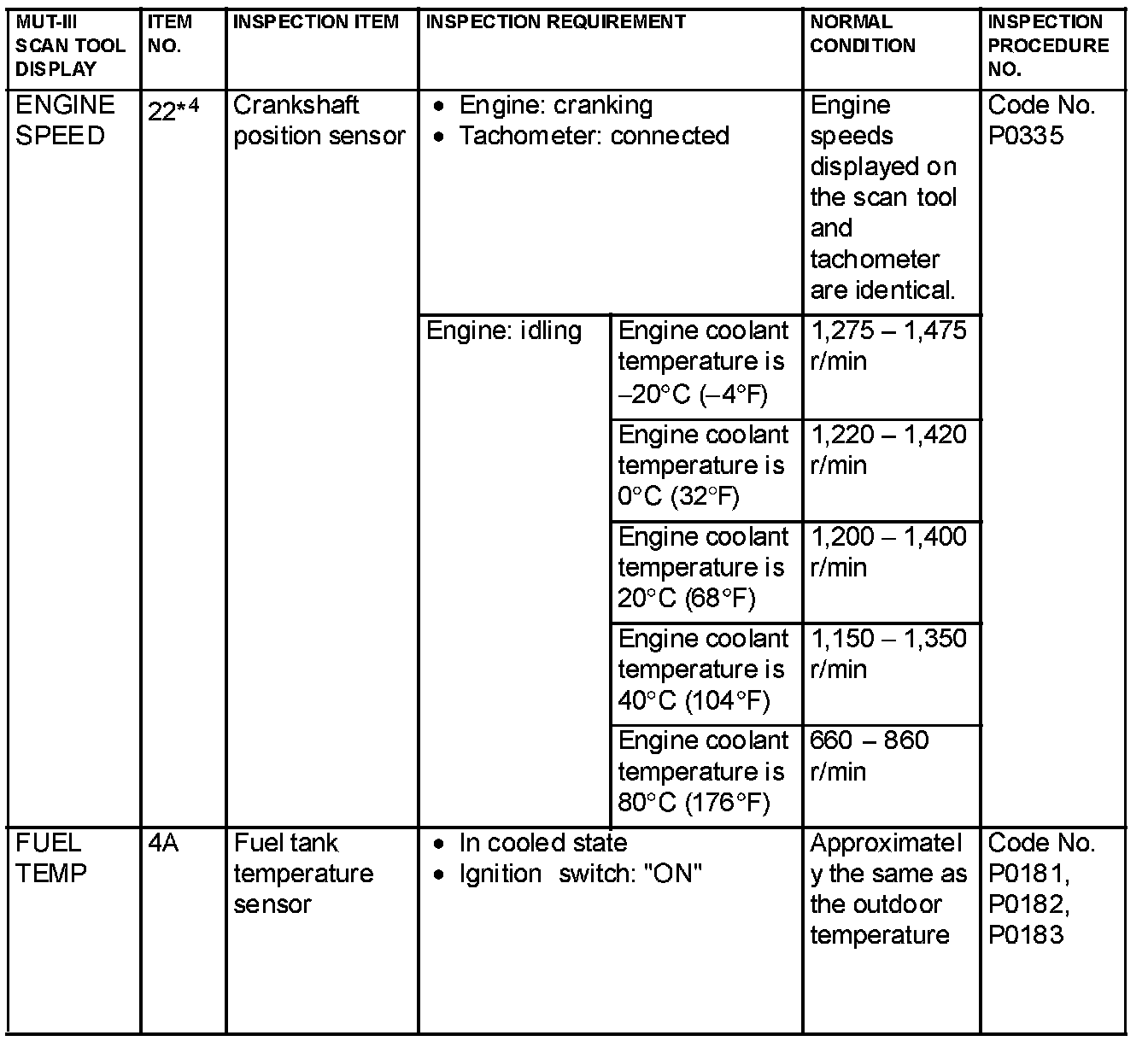 NOTE: *2: The injector drive time represents the time when the cranking speed is at 250 r/min or below when the power supply voltage is 11 volts.