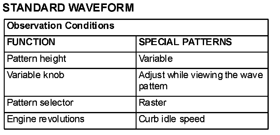 NOTE: The size of the waveform patterns can differ greatly, depending on the adjustment of the variable knob on the oscilloscope.