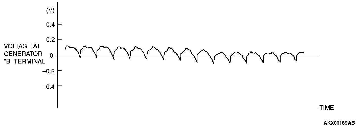 If the ripple height is abnormally high (approximately 2 V or more during idling), the wires between the generator "B" terminal and the battery have broken due to fuse blowing, etc. The generator is usually operating properly.