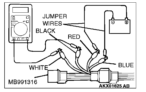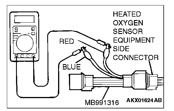 1. Disconnect the heated oxygen sensor connector and connect special tool MB991316 to the connector on the heated oxygen sensor side.