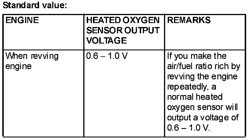 3. If the output voltage is not within the standard value, replace the heated oxygen sensor.