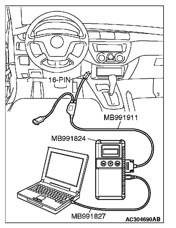 1. Connect scan tool MB991958 to the data link connector.