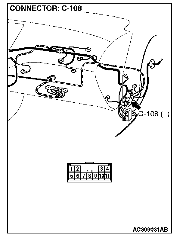 STEP 6. Check combination meter connector C-02, intermediate connector C-108 and ECM connector C-133