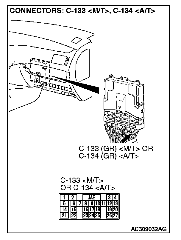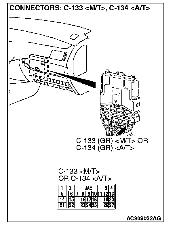 STEP 9. Measure the terminal voltage at ECM connector C-133