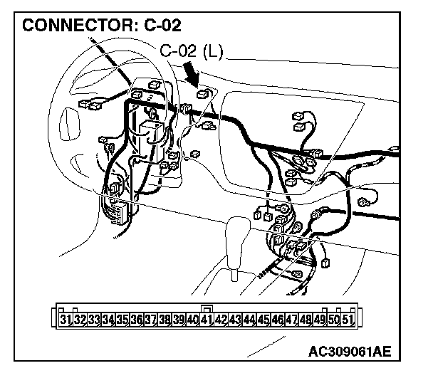 STEP 7. Check the harness wire between combination meter connector C-02 terminal 33 and ECM connector C-133