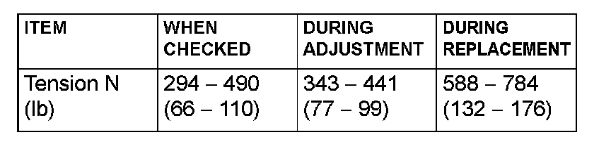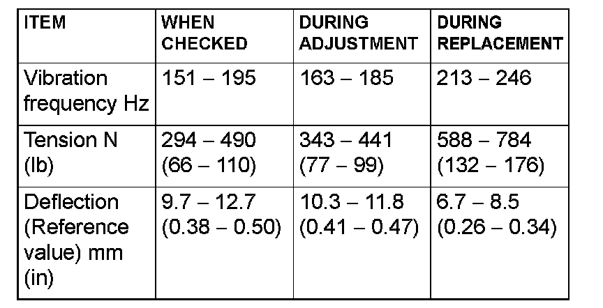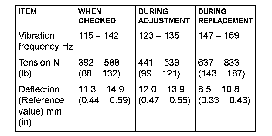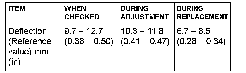 If the tension or deflection is outside the standard value, adjust by the following procedure.