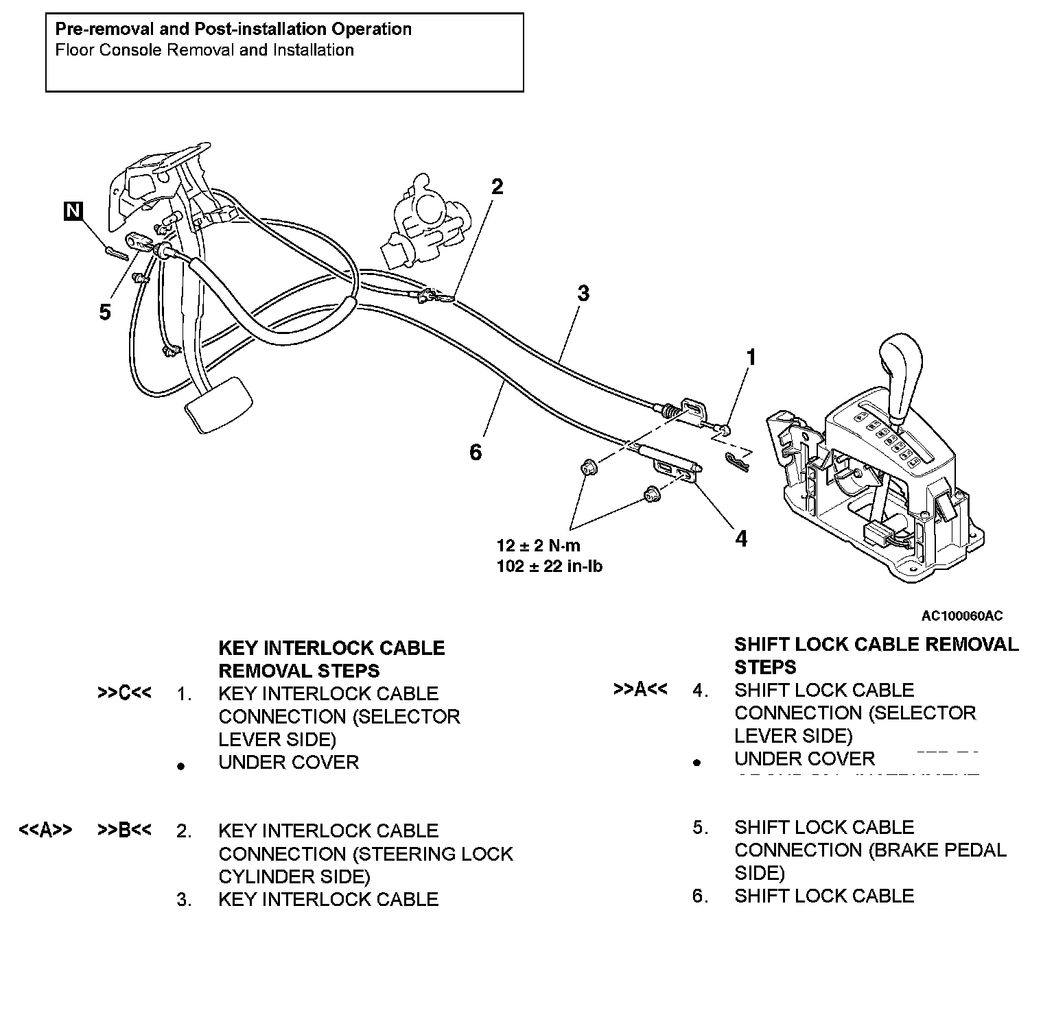 <> KEY INTERLOCK CABLE (SELECTOR LEVER SIDE) REMOVAL
