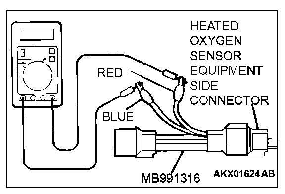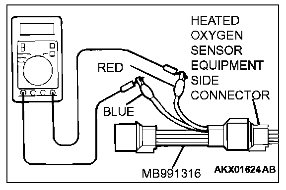 1. Disconnect the heated oxygen sensor connector and connect special tool MB991316 to the connector on the heated oxygen sensor side.