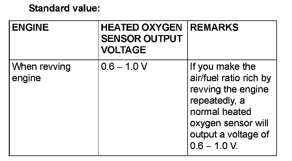 - Be careful the heater is broken when voltage of beyond 8 volts is applied to the heated oxygen sensor heater.