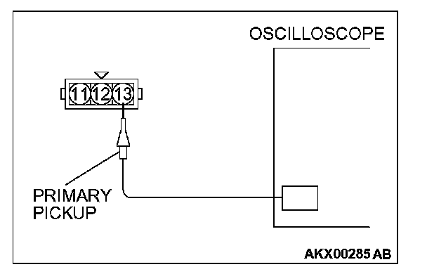 2. When observing the number 1 - 4 cylinder group, connect the primary pickup of the oscilloscope probe to ignition power transistor side connector terminal (13).