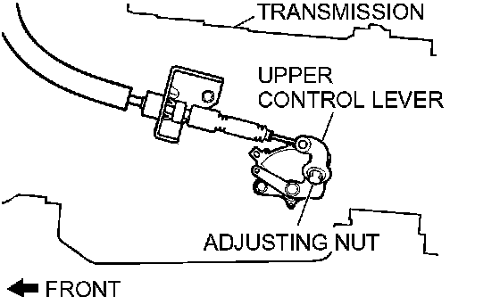 4. Adjust the upper control lever so that there is no slackness or excessive tightness in the transmission control cable, and then tighten the adjusting nut to the specified torque.