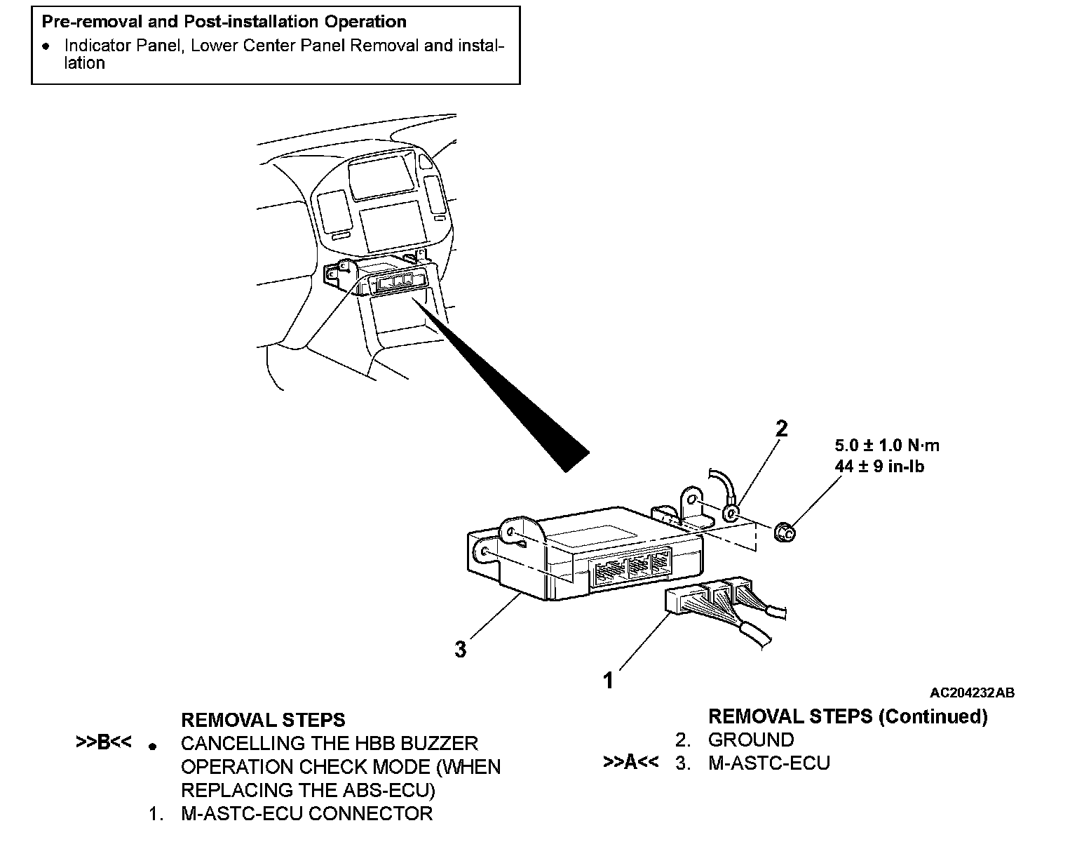M-ASTC CONTROL UNIT (M-ASTC-ECU)REMOVAL AND INSTALLATION