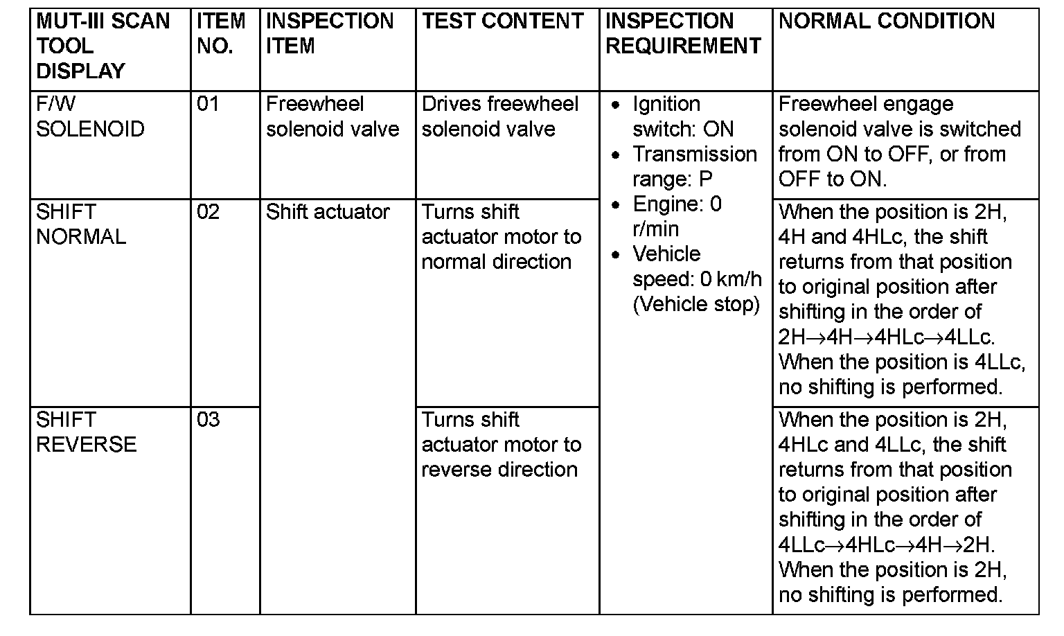 Actuator Test Reference Table