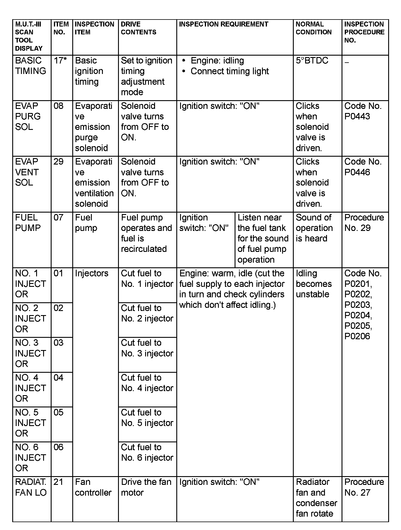 Actuator Test Reference Table Part 2: