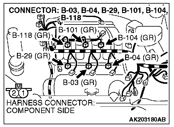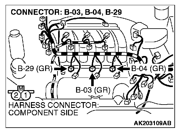 1. Disconnect the left bank injector connector B-03, B-04, B-29.