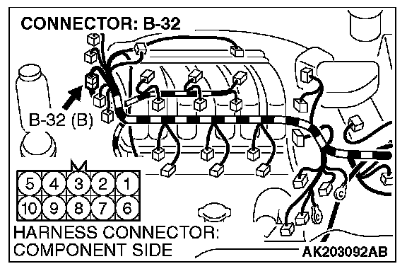 STEP 11. Check harness connector B-32 at the intermediate connector for damage.