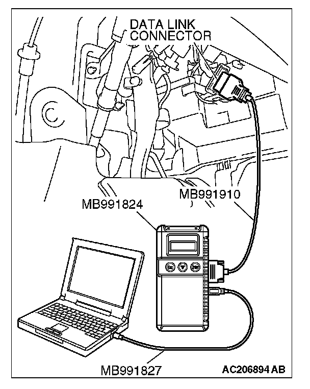 1. Connect scan tool MB991958 to the data link connector.