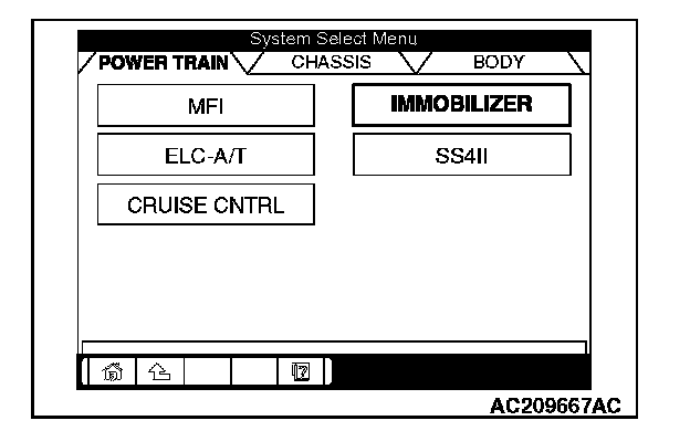 5. Choose "IMMOBILIZER" from the "POWER TRAIN" tab.