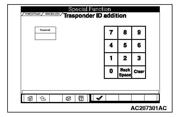 5. Enter the vehicles password (secret code) on the "Transponder ID addition" screen, and then click the check mark icon.