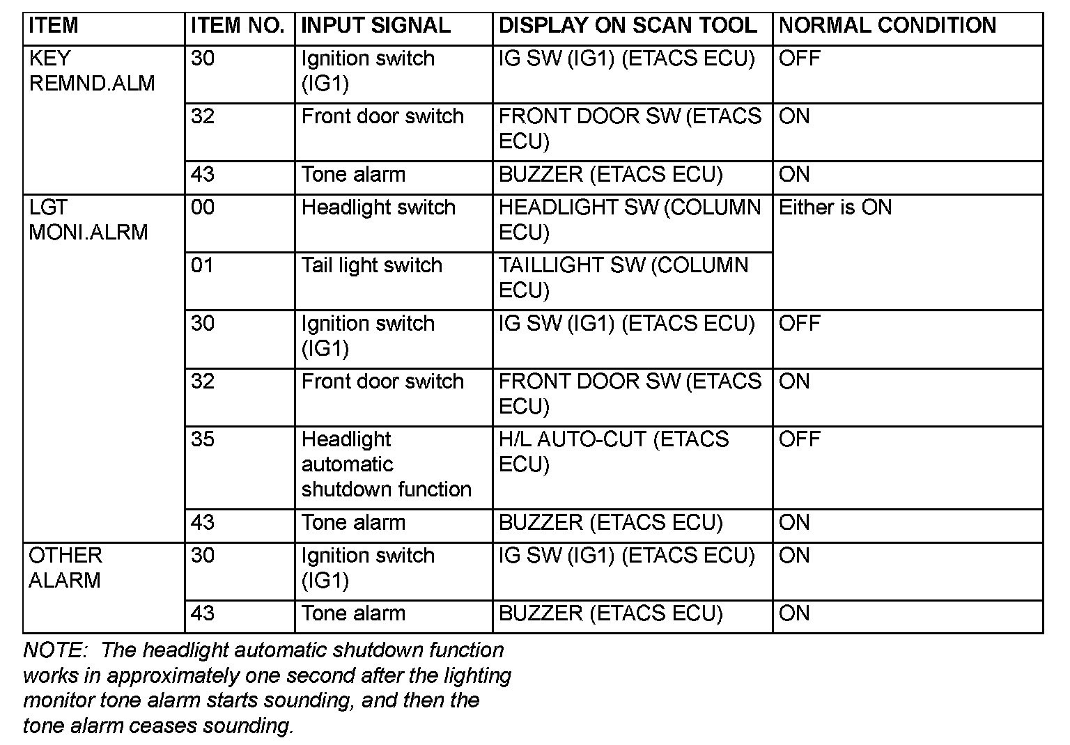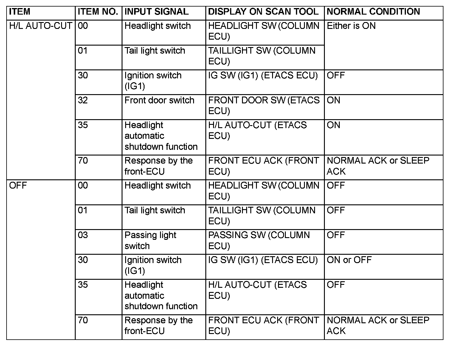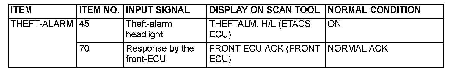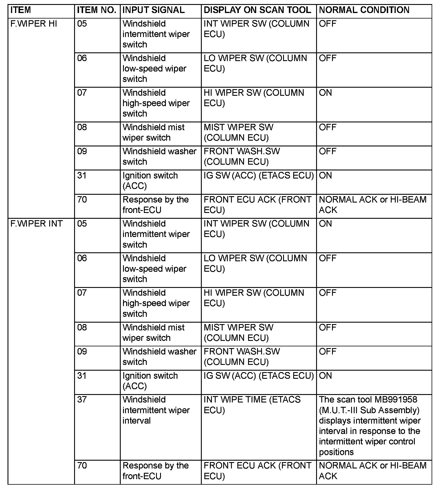 The table shows the service data and their normal condition, which are displayed during the "Function Diag." The column "Normal condition" shows values, which are shown when each operation is made.