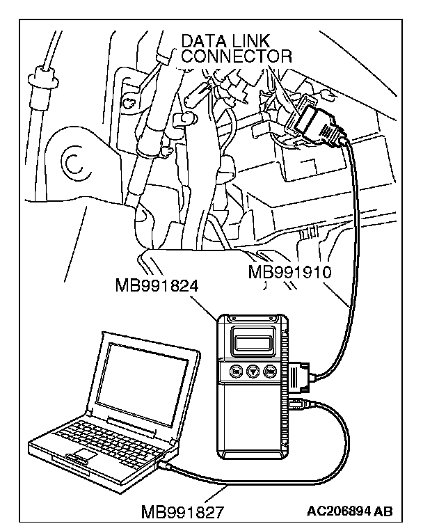 5. Connect special tool MB991910 to the data link connector.