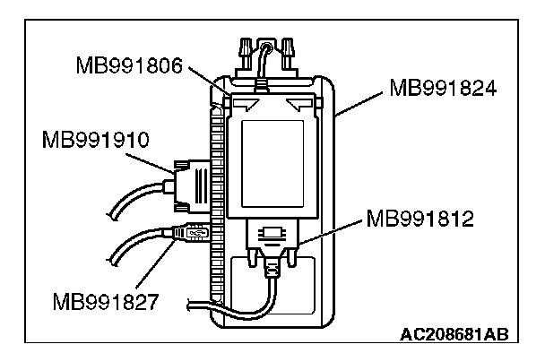 NOTE: When special tool MB991824 is energized, special tool MB991824 indicator light will be illuminated in a green color.