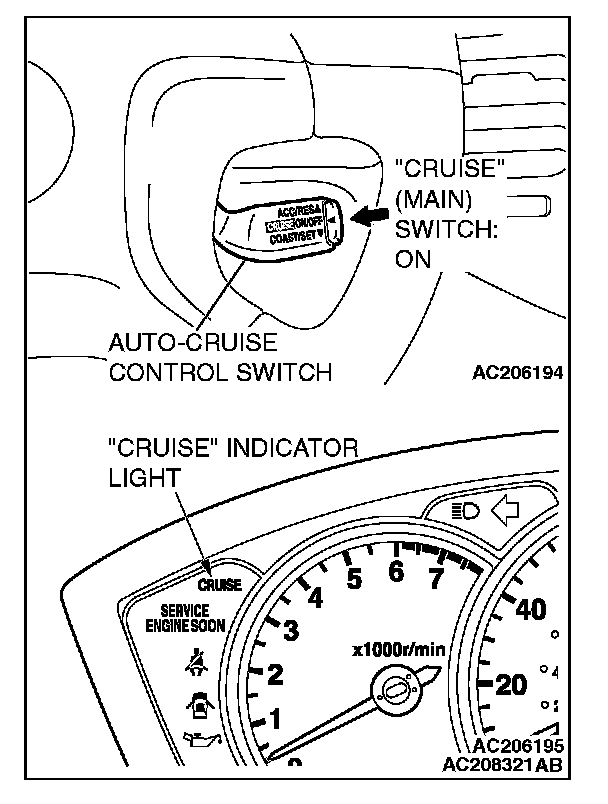 1. Switch "ON" the "CRUISE" (MAIN) switch.
