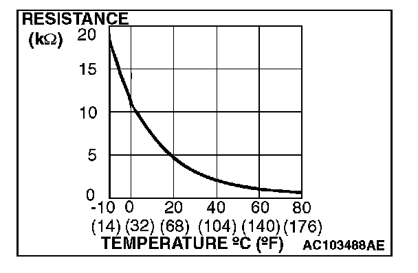 When the resistance between the sensor terminals is measured under two or more temperature conditions, the resistance should approximately satisfy the illustrated values.