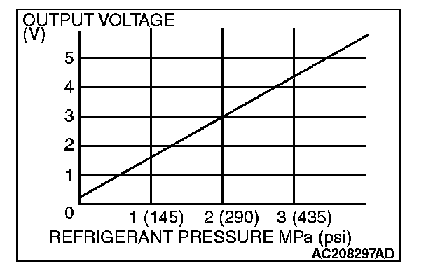 4. At this time, check to see that the voltage of A/C pressure sensor terminal No.2 reflects the specifications of the figure.