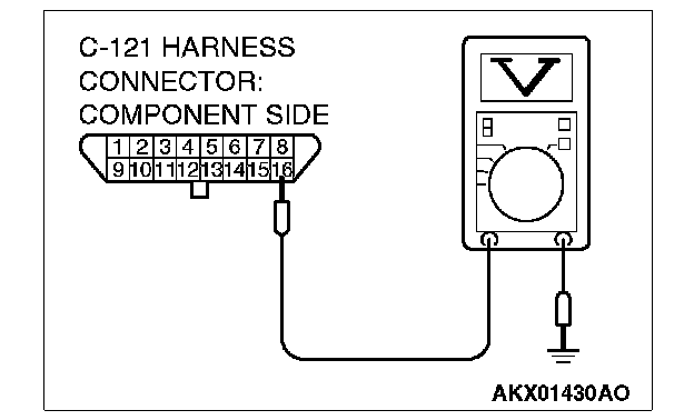NO: Repair an open circuit or harness damage between data link connector C-121 (terminal No.4 No.5) and ground. Then confirm that the malfunction symptom is eliminated.